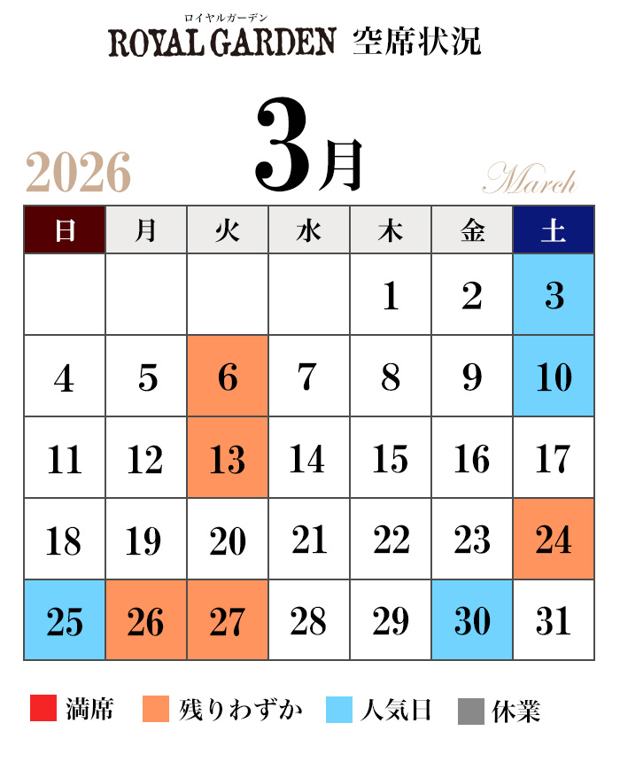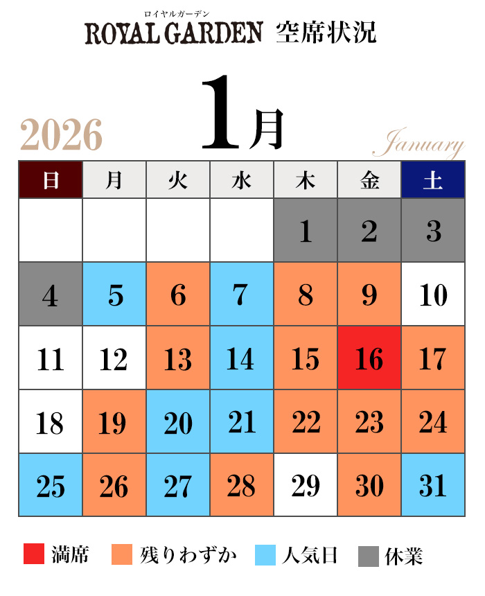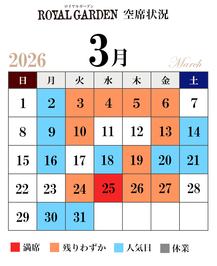 お下見、会場ご見学は、日時によっては貸切や担当者不在でご対応できない場合がございます。