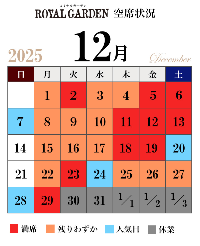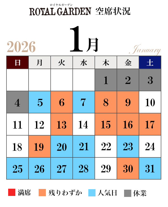 お下見、会場ご見学は、日時によっては貸切や担当者不在でご対応できない場合がございます。